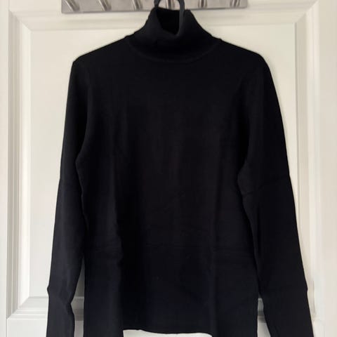 Oasis rullekrave sweater til damer i str. M. Sweateren er gul og strikket i bomuld. Den har rullekrave med knaplukning i den ene side samt ribkant ved hals, ærmer og forneden. Velegnet som hverdagstrøje eller som ekstra lag på kølige dage.