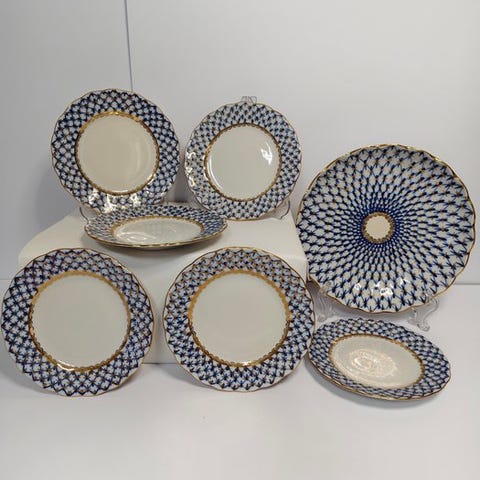 Lomonosov Imperial Porcelain Factory - A.Yatskevich - Tallerken - Cobalt Net ...