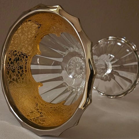 Fremragende og stort midterstykke, med farverige dekorer i 24 kt guld, udskåret i gravering, i fuld venezianisk stil, dekoreret strengt med pantograf, ikke serigraferet, indgraveret og dermed ikke klistret.