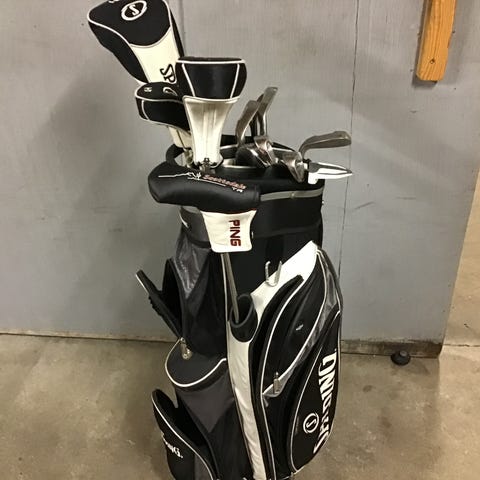 Rigtigt fint Ping Serene golfsæt med trolley, Ping bag og BagBoy rejsebag. Sættet omfatter jern, køller, Driver og putter med headcovers fra Ping Serene-serien.