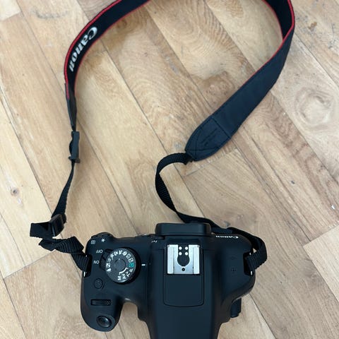 Canon EOS 2000D digitalt spejlreflekskamera i sort. Kameraet er vist med et Canon EF-S 18-55mm zoomobjektiv monteret, egnet til hverdagsfotografering og generelle motiver. Der medfølger desuden et Canon EF-S 55-250mm zoomobjektiv med billedstabilisering, som dækker teleområdet og er velegnet til motiver på længere afstand. Kamerahuset har indbygget skærm på bagsiden samt betjeningsknapper til bl.a. ISO, hvidbalance, autofokus og menuindstillinger. Velegnet til både foto og videooptagelse afhængigt af brugerens behov og indstillinger.