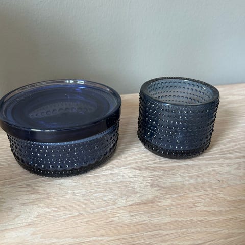 Iittala Kastehelmi i grøn glas. Opbevaring med låg.