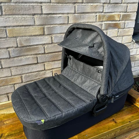 Baby Jogger lift til barnevogn i mørkeblå tekstil. Liften har fast bund, polstret inderside og aftageligt overbetræk med lynlås. Justerbar kaleche giver skygge og læ. Der er bærehåndtag i siderne for nem transport. Passer til udvalgte Baby Jogger klapvogne/barnevogne, hvor den kan klikkes på stellet som liggedel til spædbarnet.