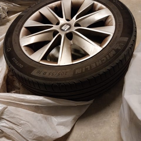 fælge med dæk. Ca 6 mm mønster tilbage. Har siddet på en Seat Toledo 2007. passer også til VW, Skoda og Audi. prisen er for alle 4 hjul