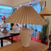 Bordlampe hvid keramisk med lampeskærm