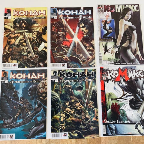 Image Comics Spawn tegneseriehæfter samling. Serien består af flere enkeltstående hæfter fra Spawn-universet med forskellige forsider og numre, som ses på billederne. Tegneserierne er i amerikansk comic book-format med farvetryk og bløde omslag. Egnet til læsning eller som udvidelse af en eksisterende samling af Spawn-tegneserier og superhelte-comics.