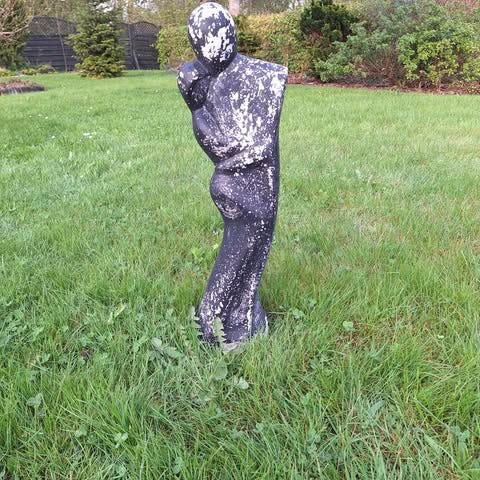 Udendørs skulptur af sten og jern/metal, ved ikke hvem kunstner er.