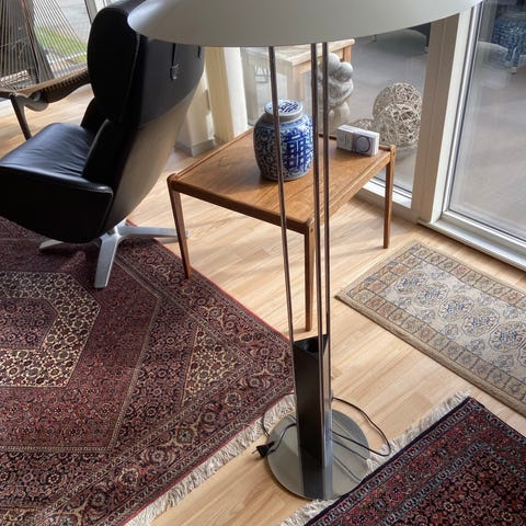 Jeg har købt den for meget har kun brugt den få mdr. det er en stå lampe 123 cm høj sort