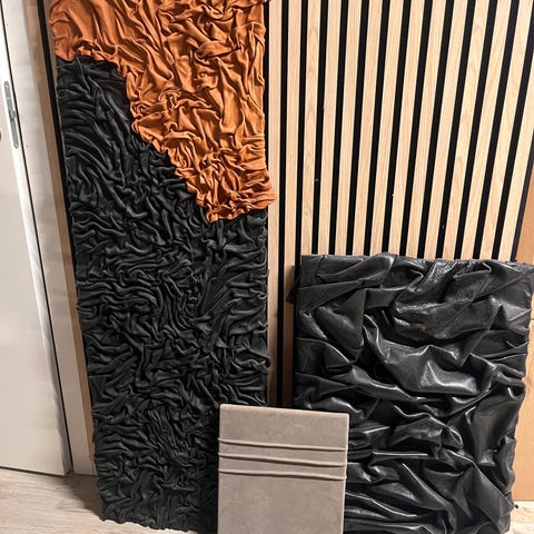 Hjemmelavet vægkunst lærred sort med farvede håndaftryk og tekst