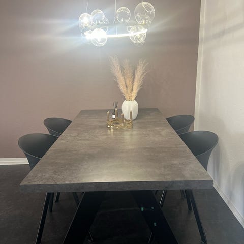 Elegant spisebord fra Meza by Hammel med massive egetræsben og bordplade i finer'