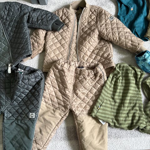 Fint rødt thermosæt fra Mikkl-line str. 86. Ingen huller, men pletter på knæ og numse. Se billeder