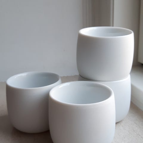 Serie af Hvid kvalitets porcelæn, bisquit, biscuit matteret yderside, blank inderside.