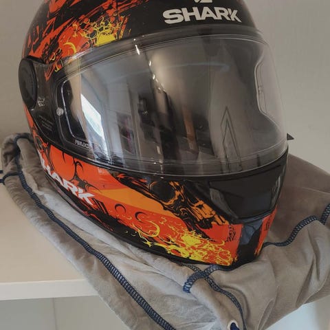 - Brugt i ca. 2 sæsoner, står som ny, visir skal bare pudses. Andre visir haves desværre ikke, men det lyserøde som ses på, medfølger selvfølgelig og var et tilkøb jeg gjorder mig: https://www.xlmoto.dk/product/visir-shark-antiscratch-iridium-homol_pid-PM-4970983