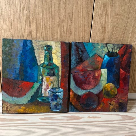 Oliemaleri, CARLOS IVAN HUERTO ZAMORA, motiv: Portrætter/Figurer, stil: Kubisme, b: 35 h: 40, FLOT OLIEMALERI AF KENDT PERUVIANSK KUNSTNER IVAN HUERTO (C.I.H.Z.)