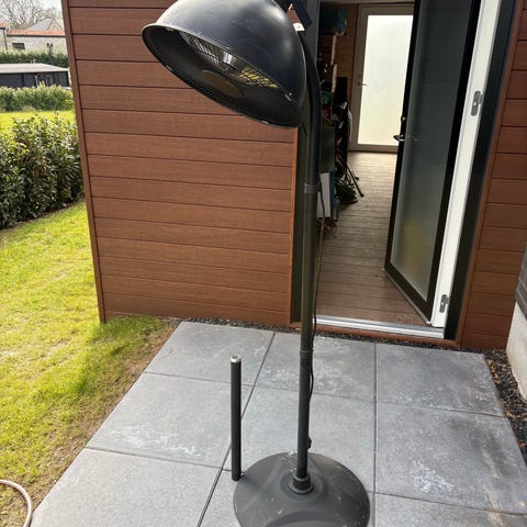 Infrarød terrassevarmer med en effekt på 1000 W. Fra Biltema. 2 stk. 1: 80kr, 2: 150