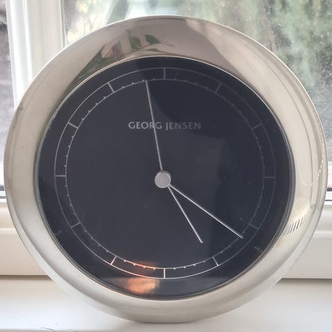 Hej sælger dette Arne Jacobsen vægur, da der ikke er brug for det i hjemmet. Helt ny og uåbnet.