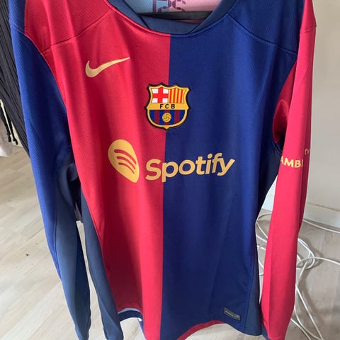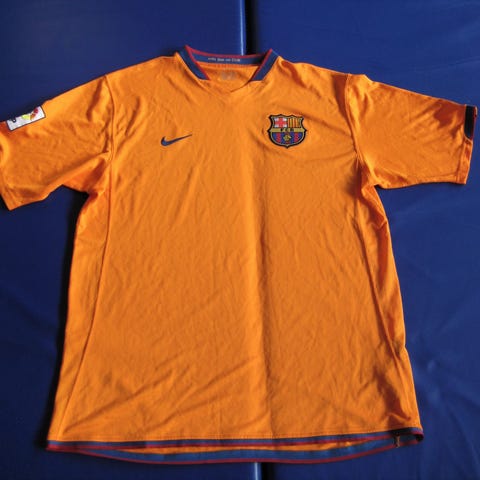 Nike FC Barcelona fodboldtrøje til herre i størrelse S. Trøjen er orange med klublogo på brystet, Nike-logo og sponsortryk på fronten samt Unicef-tryk på ryggen. Ærmet har LFP-ligaemblem. Fremstillet i let Dri-FIT materiale, egnet til fodbold og anden sport.