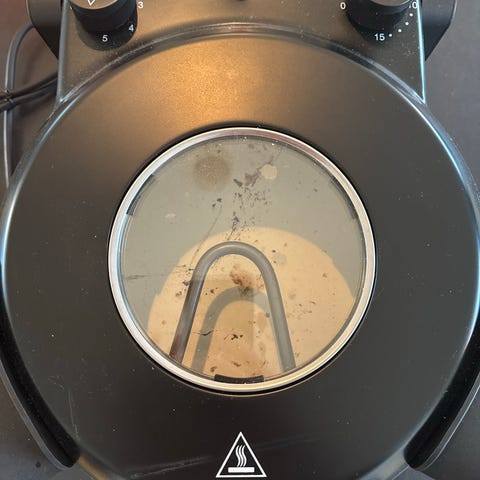 Regulerbar varme Rund bageplade indvendigt samt hængslet låg med varmelegeme.