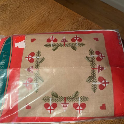 Hør juletræs tæppe, Fint hjemme lavet broderet hør juletræs tæppe