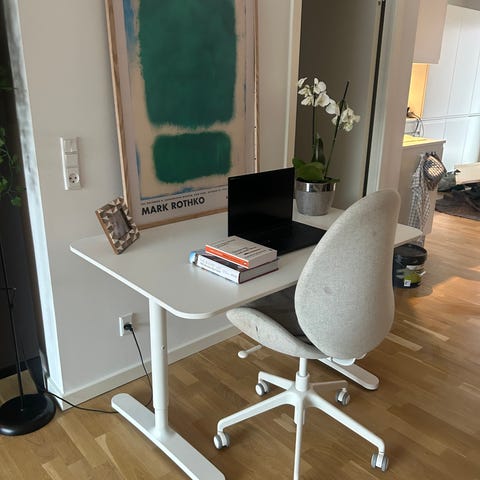 Hvidt skrivebord og stol