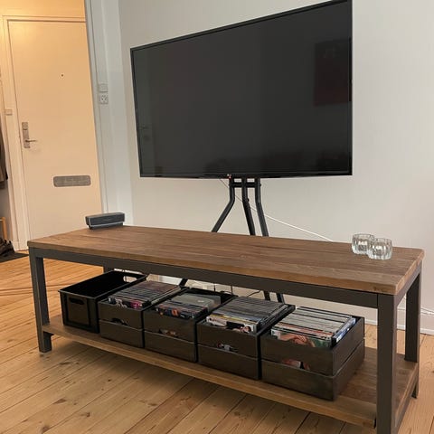 TV bænk i massiv oliebehandlet eg, fra Raun sofahus, model “Globe stereomodul 70662”.