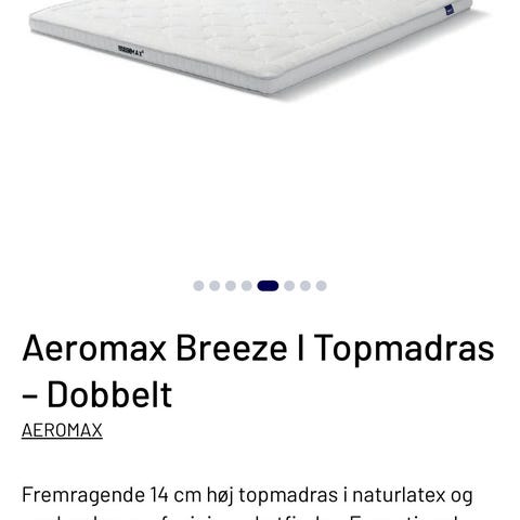 Aeromax luksuriøs 14 cm topmadras str. 90x200cm. med skum og mini-pocketfjedre. Brugt max. 1 måned og er i pæn stand. Fra dyrefrit og røgfrit hjem.