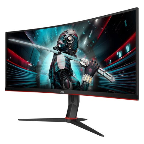 Samsung S34E790C skærm med 34" skærmstørrelse i sort. Skærmen har buet ultrabredt format, hvilket giver ekstra arbejdsplads på skrivebordet. På bagsiden findes flere tilslutningsmuligheder, herunder DisplayPort, HDMI, USB-porte samt netværksstik. Velegnet til kontorarbejde, multitasking og generel brug, hvor der er behov for et bredt billedeområde.
