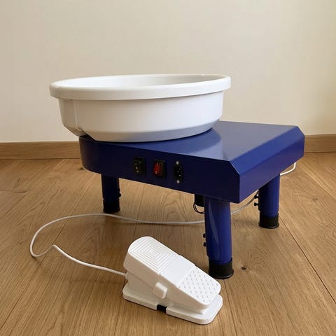 Knudsen drejeskive i støbejern med Kraftig fod i støbejern med præget navn og stabil konstruktion. Øverste plade er i med cirkulært mønster. Velegnet som dekorativ genstand, lille piedestal eller arbejdsunderlag til f.eks. keramik eller håndværk.