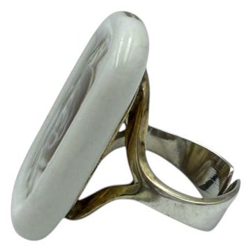 Royal Copenhagen sterlingsølv - stor ring med mørkeblåt porcelæn på toppen.