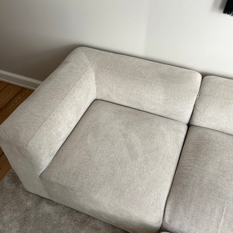 Meget behandling beige 2-personers modulsofa med chaiselong fra jysk. Sofaen sælges da jeg ønsker en større sofa. Sofaen er kun brugt on and off siden efteråret 2025, da der ikke har boet noget fuldtid i lejligheden. Sofaen er derfor helt som ny uden nogle brugstegn.