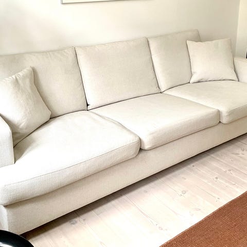 Lige nu står den bare til opbevaring indtil min nye sofa kommer. Puderne kan godt følge med ved hurtigt handel.