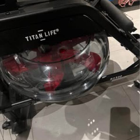 Titan SR560 romaskine i sølv/sort. Modellen har indbygget træningscomputer, der viser bl.a. tid og antal tag. Justerbar modstand reguleres via drejeknap på fronten. Udstyret med fodpedaler med remme og polstret sæde på skinne for glidende bevægelse. Velegnet til indendørs konditions- og styrketræning af hele kroppen.