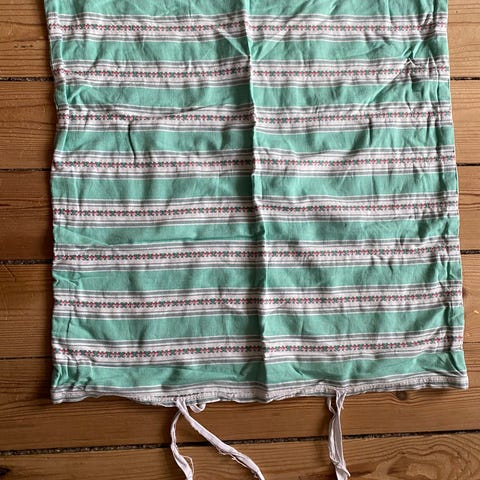 Meget smuk dynebetræk eller man kan naturligvis bruge det som tekstil til andet projekt meget smukt farve med fine blomster med svag blå aftegninger så vidt jeg kan se er der ingen pletter. Farve kan jeg bedst beskrive som svag karry Owl med brun nuance. Der er lynlås i sengetøjet. Jeg kan ikke se materialet desværre