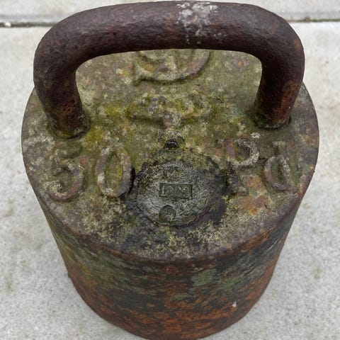 Antik vægtlod i messing / malm. Muligvis engelsk. Højde: 18 cm. Vægt: 3,3 kg. Kan sendes. Fragtomkostninger kr 79,-