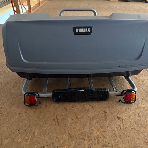 Thule bagageboks til montering på anhængertræk. Hard box til ekstra bagageopbevaring bag på bilen.