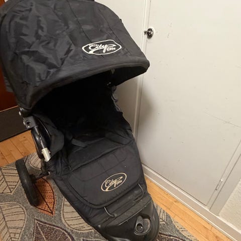 Baby Jogger klapvogn i sort. Vognen har tre hjul, justerbar kaleche og der medfølger original regnslag og stor opbevaring under sædet. Foran sædet er der bakke med kopholder. Der er små brugsspor på klapvognen, men fungerer upåklageligt.
