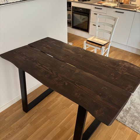 Homemade black/white tiled dining table 167x73cm. Stable, minor edge wear, great condition. Pickup Frederiksberg 2000. 900 DKK OBO.