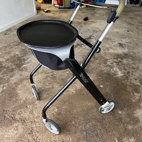 Lad os gå ud rollatorer med Taske og Bakke fra Trust Care er perfekte til udendørs brug. De er både smidige og stabile, nemme at folde sammen og vejer kun 6,4 kg. Rollatoren fylder lidt og står selv, når den er foldet sammen. Det er let at dreje og komme over f.eks. kantsten takket være de store forhjul. Baghjulene beskytter dit tøj med skærme over hjulene. Den stødabsorberende affjedring på baghjulene gør, at alle gåture bliver behagelige uanset underlag.