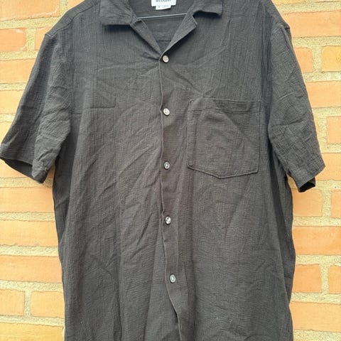 Weekday Lake Camo Shirt herreskjorte i størrelse L. Skjorten er kortærmet og fremstillet i bomuld. Den har multifarvet camouflageprint i grønne, brune og beige nuancer. Klassisk krave og gennemgående knaplukning foran. Velegnet til hverdagsbrug eller afslappede anledninger.