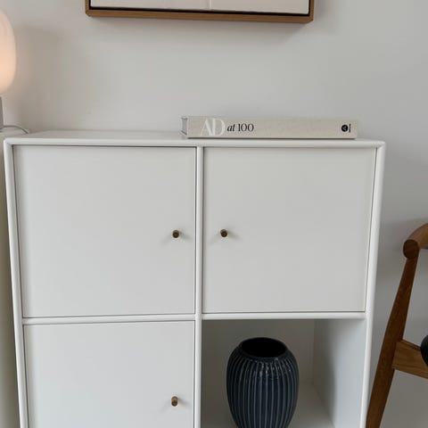 Flot Montana reol i New White. Den ene låge er tilføjet for 1 års tid side og selvom det hele er New White, så er tonen en anelse anderledes. Derfor lavere pris,.