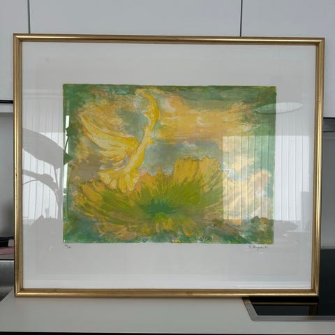 Har en fin historie, da det oprindeligt blev givet som gave fra kunstneren til en familie.