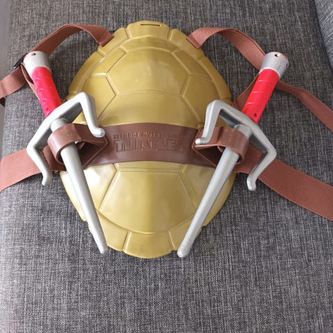 Ninja turtles dynebetræk i voksenstørrelse fra 1991. Er i overordnet rigtig fin stand. Flot i farverne. Er gået lidt op i syningen nederst ved åbningen og har et lille hul der også (se foto). Er i Vanløse. Jeg sender ikke med fiks færdig.