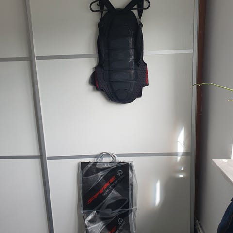 Flaxta Behold Back Protector Vest rygskjold i størrelse L. Rygskjoldet er integreret i en sort vest med frontlynlås og justerbar hofterem. Designet til at give rygbeskyttelse ved sport og aktiviteter, hvor ekstra sikkerhed omkring ryggen er ønsket. Materialet er let og fleksibelt for at give bevægelsesfrihed under brug.