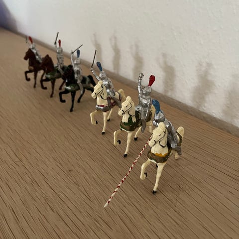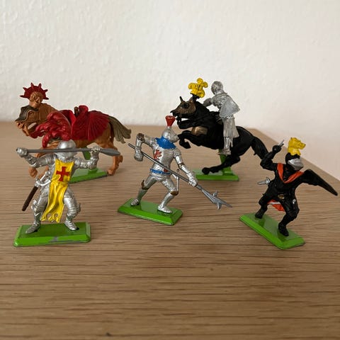 6 figurer og 1 rytter 55 mm - alle stemplet med Britains i bunden.