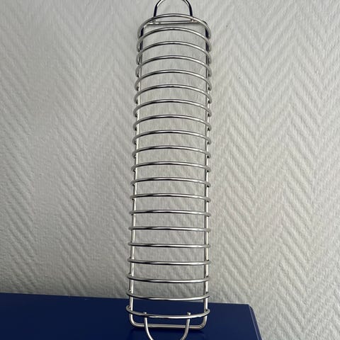 Toastholder med teakbund og stål holder.