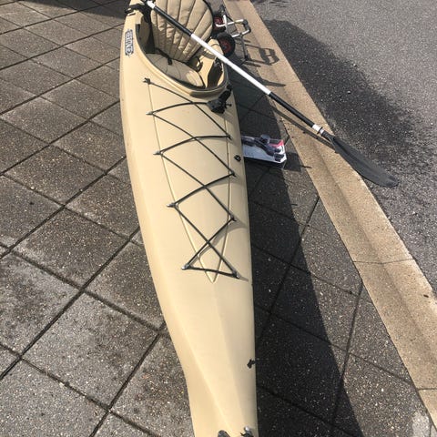 Wilderness Systems Commander 140 kajak i grøn farve. Åben, stabil skrogkonstruktion med siddeplads og mulighed for stående position. Udstyret med sæde, opbevaringsluger for og midtskibs samt elastikliner til fastgørelse af udstyr. Skinner langs siderne til montering af tilbehør som f.eks. stangholdere eller elektronik. Leveres med pagajer og kajakvogn som vist på billederne. Velegnet til fritidsroning og fiskeri på sø, fjord og kystnære områder.