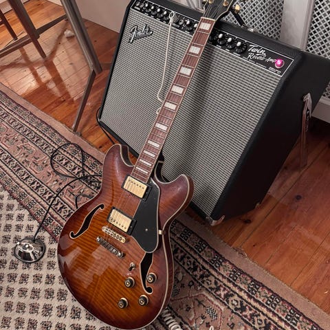 Fin gammel Fender Twin Reverb fra en gang i 70´erne. Med flightcase og fodpedal. Den spiller som en drøm, er serviceret undervejs, har fået skiftet rør og den en højttaler på et tidspunkt. Frontstof er nyt, men den er tung ad hel… til.