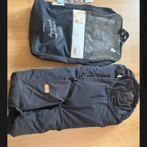 Voksi kørepose med uldfor i grå. Yderside i tekstil og inderside med lyst uldfor, der dækker hele liggefladen. Køreposen kan åbnes foran med lynlås for nem adgang og tilpasning af temperatur. Egnet til brug i barnevogn eller klapvogn til at holde barnet varmt under køreture.