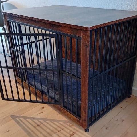 Egnet som kombination af opbevaringsmøbel og indendørs bur til mindre eller mellemstore hunde.