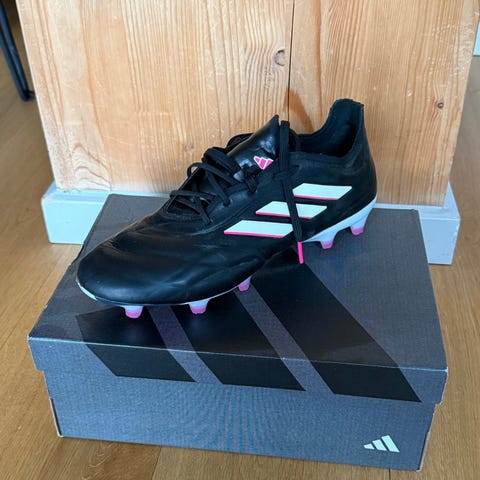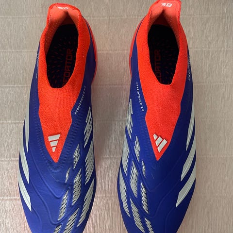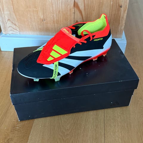 Adidas Predator Mutator 20+ FG fodboldstøvler i størrelse 42 (EU), 8 (UK) og 9 (US). Modellen er uden snørebånd med sok-lignende skaft. Overdelen er i syntetisk materiale med rød og sort farvekombination samt hvide Adidas-striber. FG-ydersålen er designet til brug på faste naturgræsbaner. Skoene leveres i original æske med modelnummer EF1565 angivet på kassen.